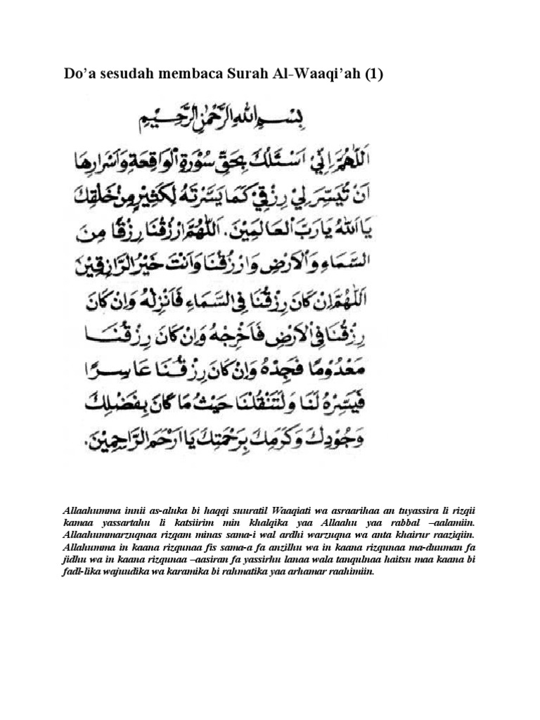 Doa Surat Al Waqi Ah Latin Indonesia Lengkap Beserta Terjemah