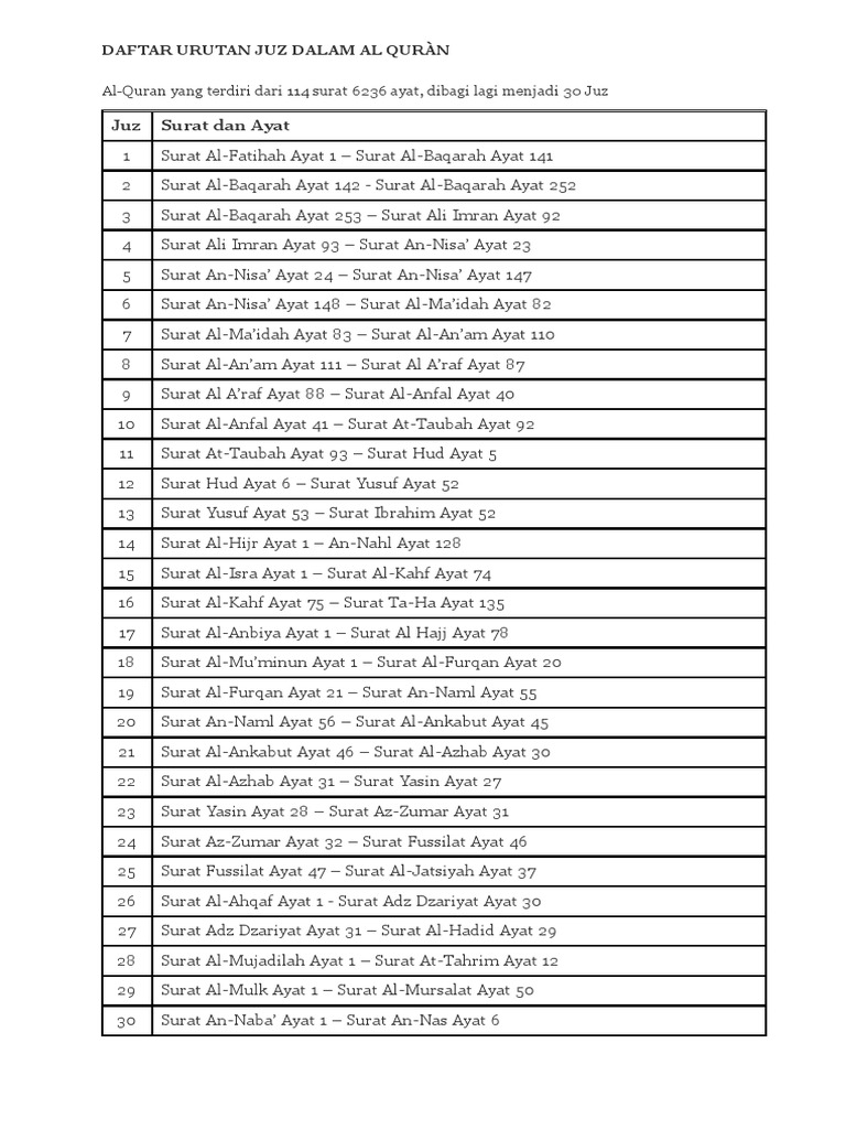 | Baca: Daftar Urutan Surat Surat Pendek Dalam Al Qur An Juz Amma Juz 30 |