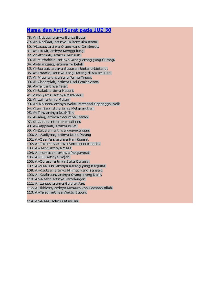 | Judul Surah: Nama Nama Surat Juz 30 Beserta Artinya Kumpulan Contoh Surat |